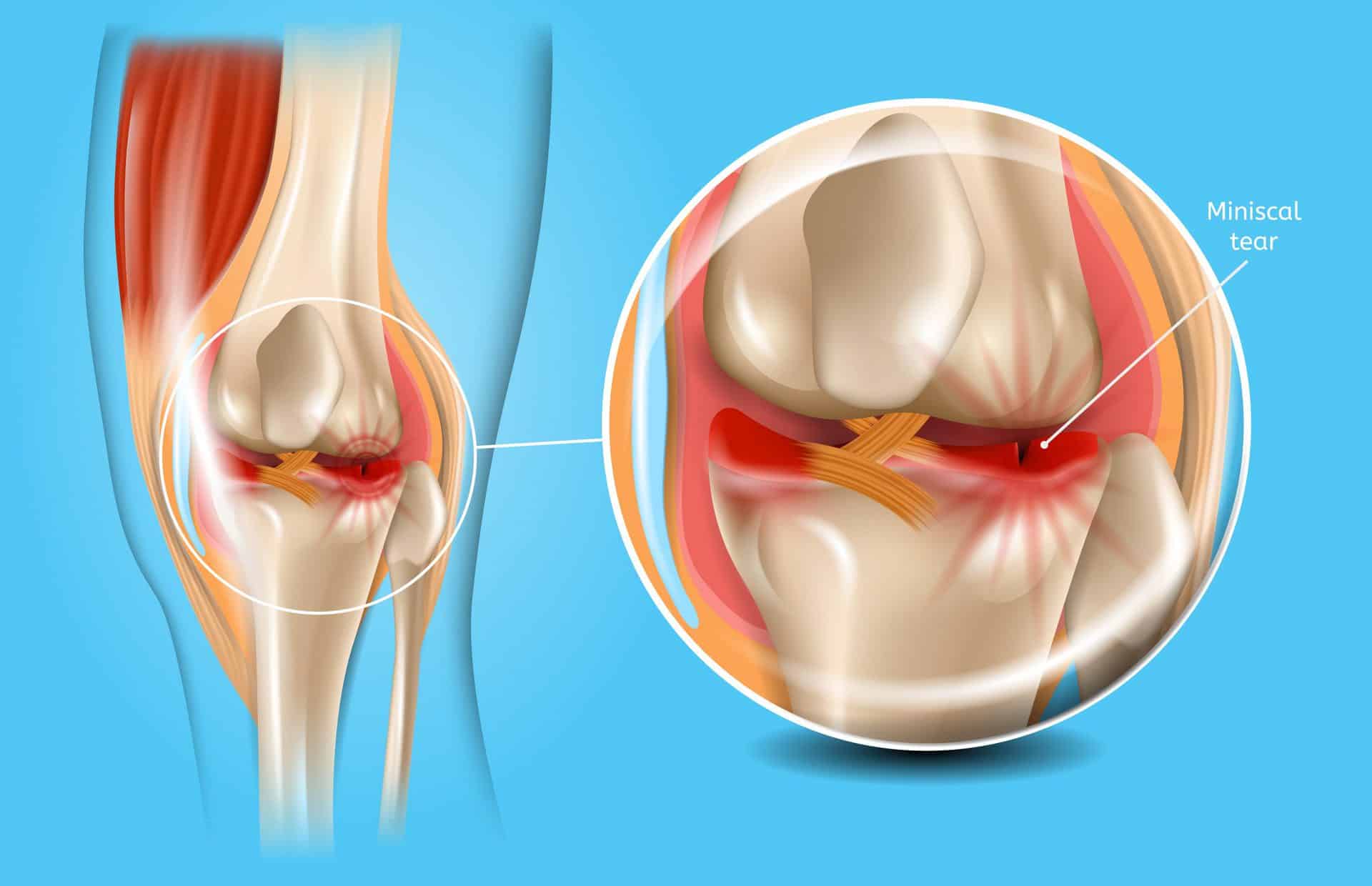 Arthroscopic meniscal repair is an outpatient surgical procedure used to repair torn knee cartilage. The torn meniscus is repaired by a variety of minimally invasive techniques and requires postoperative protection to allow healing. Physical therapy helps restore the full function of the knee. This occurs on average, 45 months after surgery.
